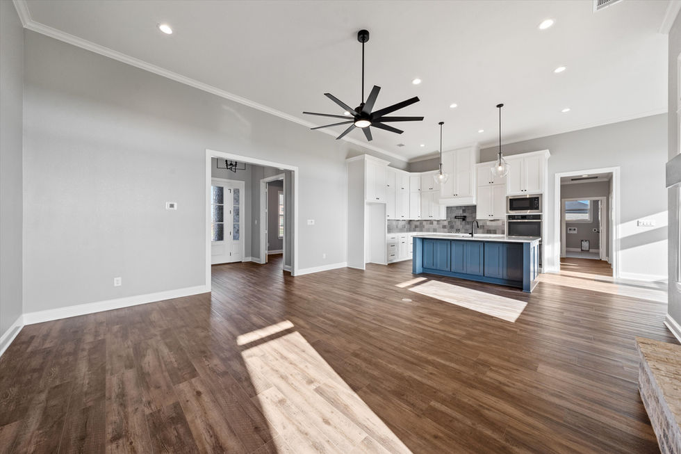 In true ranch house fashion, we present the Longview Plan by RDH. This home takes classic design elements of a ranch house and adds efficiency and class. Key features to this home include four bedrooms, three bathrooms, a large isolated Primary bedroom with spa-like bath, oversized flex room, and an abundance of storage. You can expect luxury vinyl plank flooring in all the living spaces and primary bedroom, custom wood cabinetry, tiled Primary bath with tiled shower, double pane windows, crown molding and full window trim in living spaces, granite countertops, stainless steel appliances, lavish light fixtures, and Delta plumbing fixtures with Diamond Seal Technology. Other standard features you can expect from RDH are an engineered foundation, 30-year roof shingle, full masonry exterior, OSB sheathing over the entire home, energy-efficient PEX plumbing, foam insulation in walls and roof deck, exterior accent lighting, sprinkler system, full landscaping, under-cabinet lighting, and more.